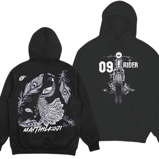 Maithilkoji Black Aesthetic Hoodies – Peacock & Rider Edition
